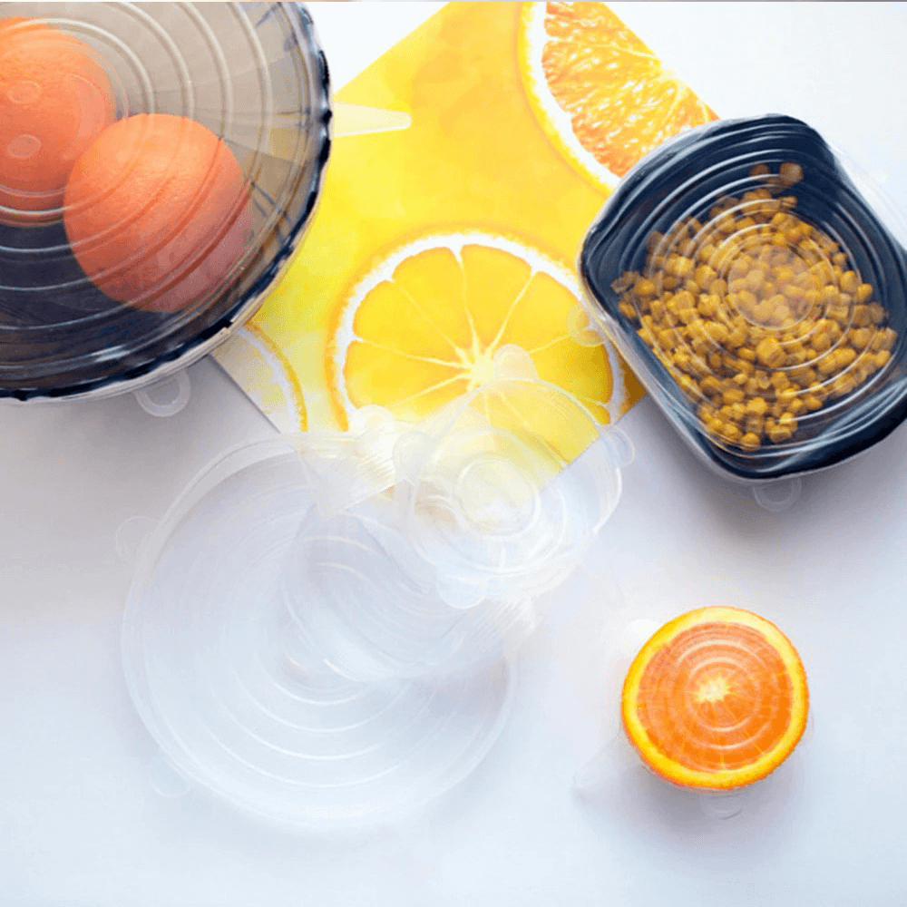 Az Univerzális Rugalmas Élelmiszeripari Szilikon Fedők újrahasználhatóak, és használhatóak közvetlenül az élelmiszereken (gyümölcsök, zöldségek) vagy műanyag és üveg tárolóedényeken. A legnagyobb előnyük az, hogy rugalmasak, ami azt jelenti, hogy minden formát felvehetnek - kör, négyzet és nem csak.